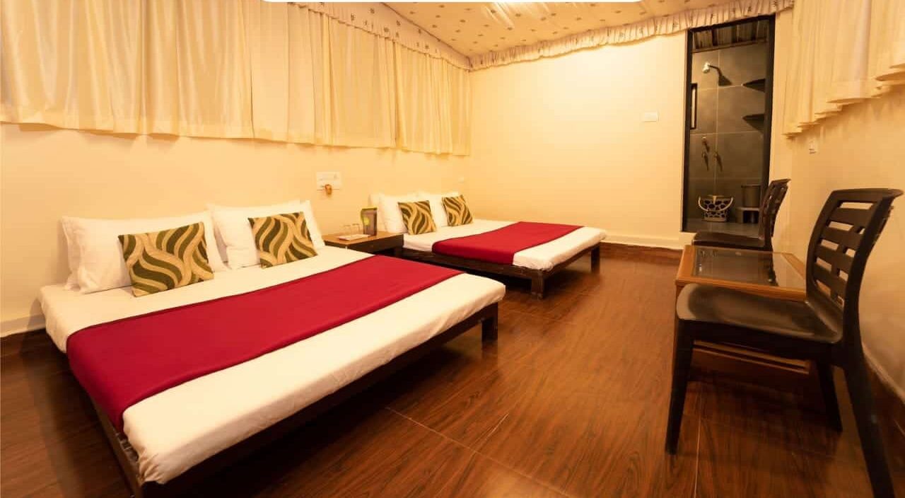 The family room at Wild Wings Jungle Resort is perfectly designed to comfortably accommodate more than 4 to 5 guests. It features cozy bedding, modern amenities, and a warm, rustic decor that complements the natural surroundings.